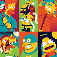 Now that the 27th (!) Treehouse of Horror Simpsons episode has aired and Halloween is just about upon us, it's time for the third print in Dave Perillo's Treehouse of Horror series! This print features characters from Treehouse's IX, X and XI. (Seasons 10-12).